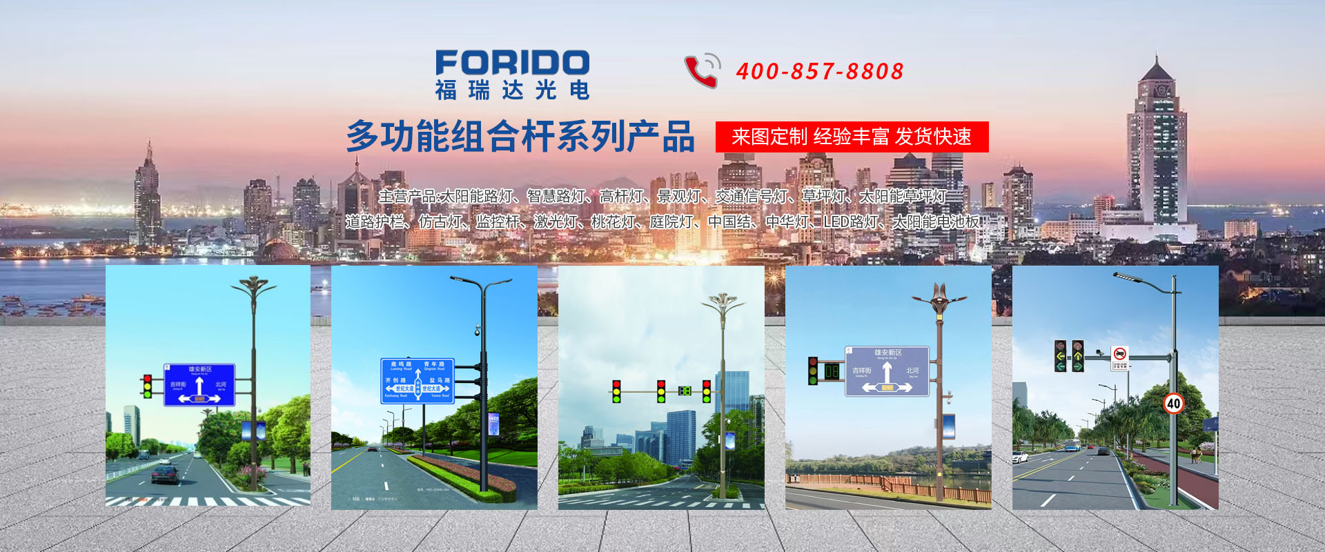 揚州福瑞達光電科技有限公司位于淮左名都歷史文化名城、中國路燈制造基地揚州市北郊菱塘工業(yè)園,公司占地面積76000平方米,注冊資金10518萬元,擁有高級技術嫻熟的員工280多人,擁有大型折彎機、激光切割、數(shù)控注塑機、壓鑄機、自動埋弧焊、氣焊、彩色粉末靜電噴塑等大型自動化設備,我公司是一家集設計、研發(fā)、生產(chǎn)、銷售、施工安裝服務為一體的戶外交通照明產(chǎn)品制造商,主要生產(chǎn)智慧路燈、太陽能路燈、LED路燈、高桿燈、景觀燈、交通信號燈、交通標志牌、通信鐵塔、路跨鋼結構、公交站臺、太陽能光伏組件、景點亮化、樓宇亮化工程的設計施工等。公司秉承開拓創(chuàng)新、銳意進取、精誠服務的企業(yè)精神,堅持以“誠信為本、技術為先、服務是金”的合作理念,我們憑借先進的制造工藝、優(yōu)質(zhì)的產(chǎn)品質(zhì)量、合理的市場價格和完善的售后服務贏得了廣闊的市場和客戶的信賴。 我公司已通過ISO9001質(zhì)量體系認證、ISO14001環(huán)境管理體認證,CQC產(chǎn)品認證,中國節(jié)能產(chǎn)品認證,通過“CCC”強制性產(chǎn)品認證,具有市政總承包,照明,交安,設計等資質(zhì)···